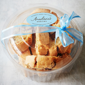 "Christmas for my family and my friends means a delivery from Anastasia's Kouzina. Anastasia brought us absolute delight through her ever so beautifully presented boxes of freshly baked biscotti and kourabiedes."